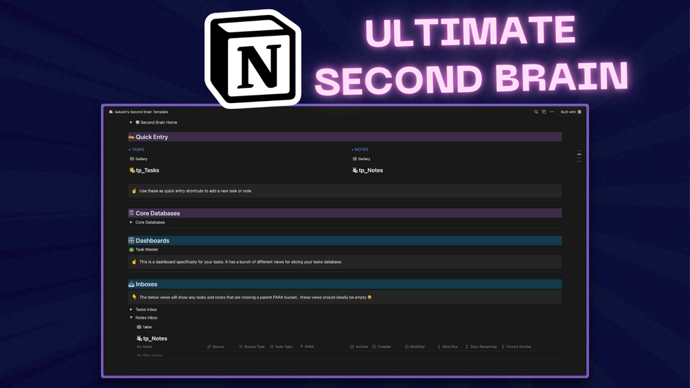Ever felt like you consume a lot of content and data but aren't able to remember and put insights into action? That's exactly how I felt for the past decade, and have now solved that issue through my own second brain in Notion. I also use this for organizing my tasks through GTD.